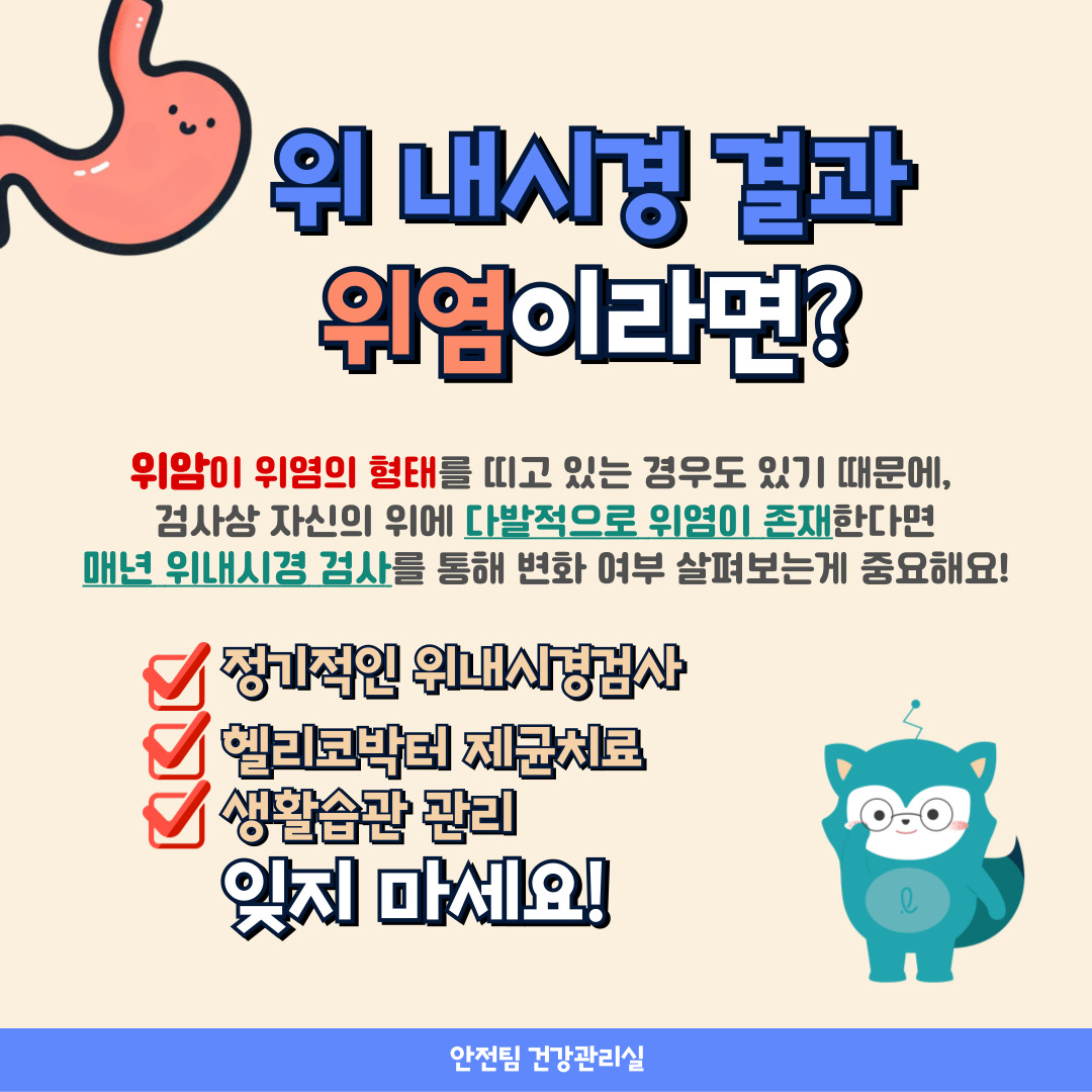 안녕하세요. 오늘은 건강검진 결과에서 흔히 볼 수 있는 위염 소견에 대해 알아보려고 합니다.
