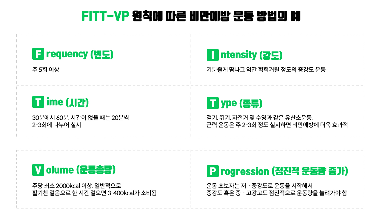FITT-VP 원칙에 맞는 운동 프로그램을 기획합니다.