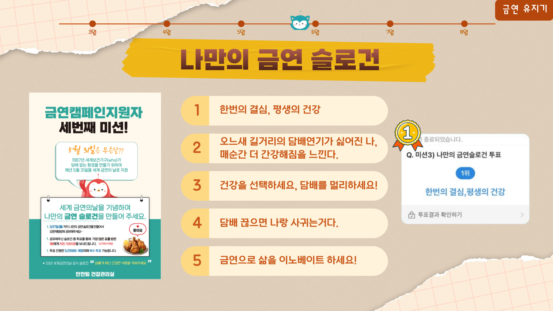 나만의 금연 슬로건을 만들어 금연을 지속할 수 있는 원동력을 만들었고,